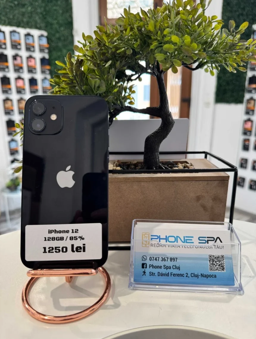 🚀📱 Hei, prieteni! Avem o super ofertă pentru voi: un iPhone 12 Negru de 128GB, în stare excelentă (85%!) și cu garanție! 😍 Plus, primești folie GRATIS! Perfect pentru un upgrade rapid sau un cadou deosebit! 🎁